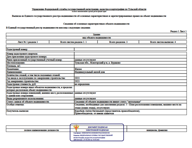 В течение 9 рабочих дней мы получили выписку из Единого государственного реестра недвижимости, подтверждающую, что объект встал на кадастровый учет и право собственности зарегистрировано. Готовая выписка из ЕГРН выглядит так: