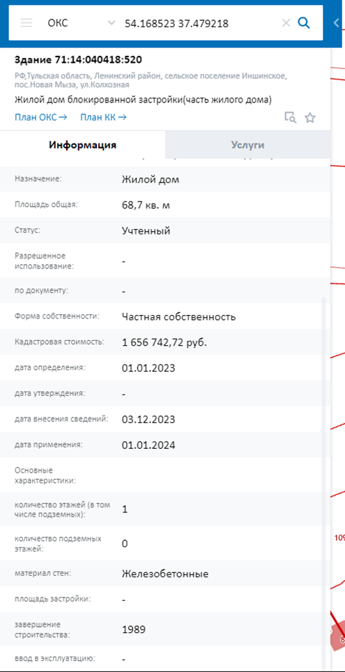 На карте можно узнать информацию, касаемо объекта капитального строительства: