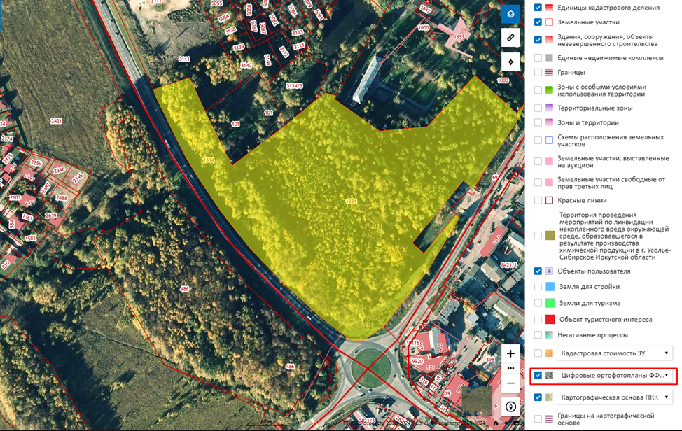 При выборе участка или проверке строения важно оценить их внешний вид, расположение относительно других объектов недвижимости, удаленность от проезжей части и промышленных объектов. Для этого на публичной кадастровой карте можно переключиться на спутниковую карту. В разделе «Слой» нужно выбрать пункт «Цифровые ортофотопланы ФФПД».