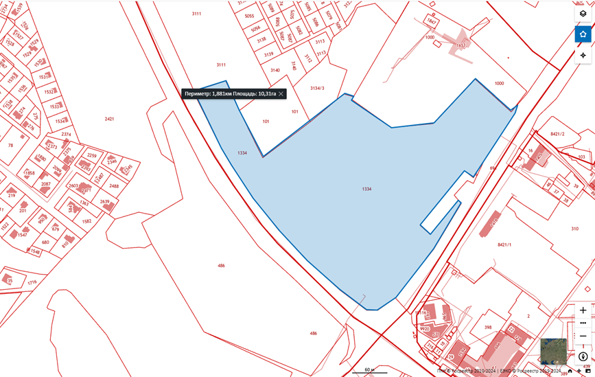 Если вы выберете третий значок и аналогичным образом очертите на ПКК границы участка, сервис самостоятельно рассчитает его периметр и площадь. Публичная кадастровая карта — удобный и доступный инструмент. Однако все полученные в нем сведения носят справочный характер. Чтобы получить юридически значимую информацию, придется заказать выписку из ЕГРН.