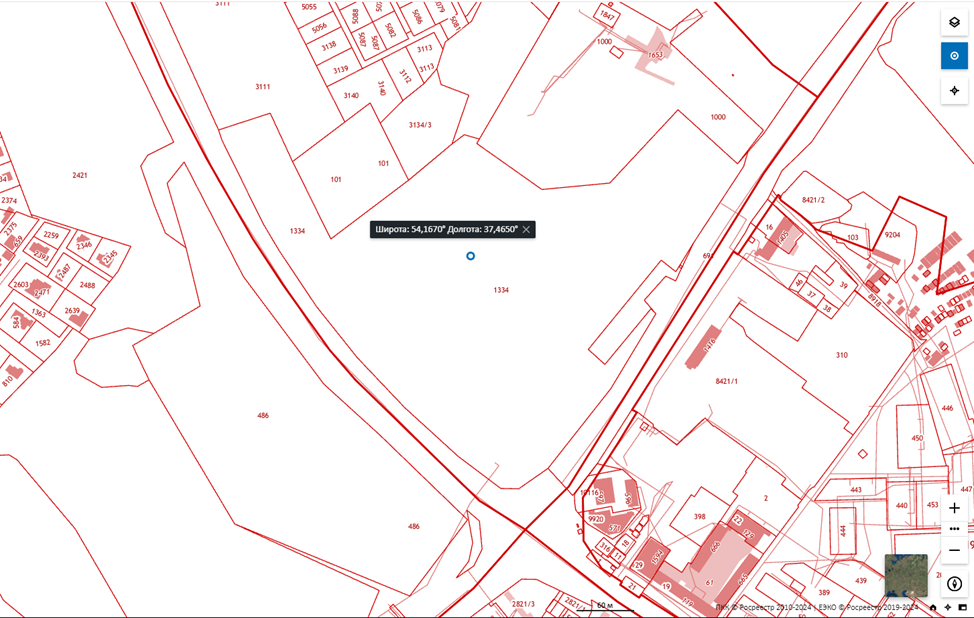 На Публичной кадастровой карте можно узнать точные координаты любого объекта недвижимости. Для этого вам нужен раздел «Измерение» в главном меню. Из открывшихся значков нажмите на первый — «Координата», а затем — на интересующий объект на карте. В информационном поле слева вы увидите его широту и долготу.